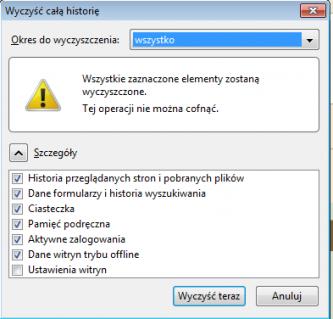 W innych przeglądarkach będziesz miał podobną opcje - zaznacz wszystko co możliwe i zrób wyczyść.