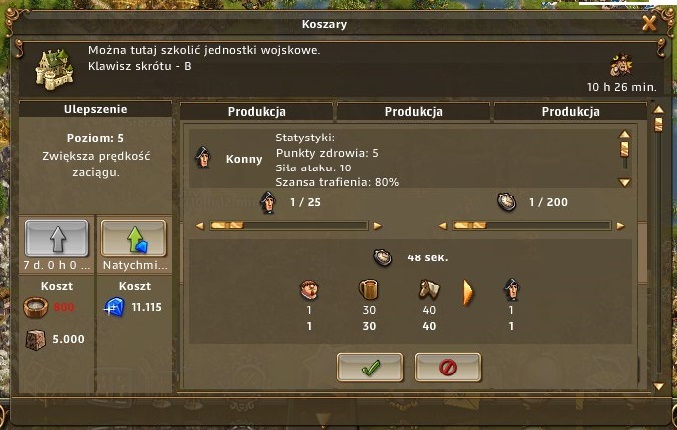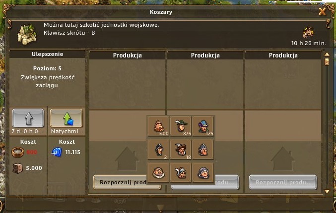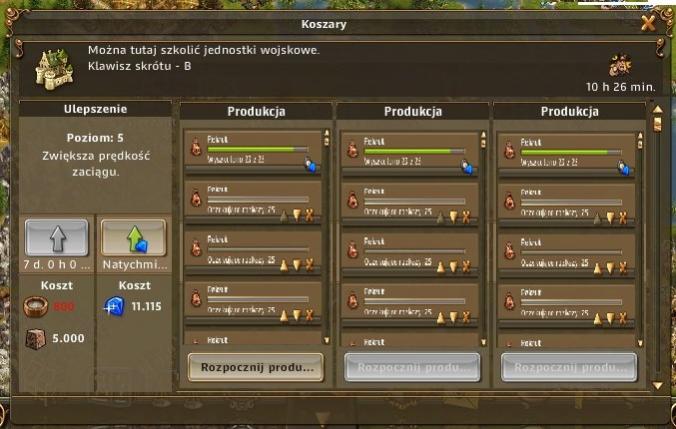 Czy nie było by lepszym rozwiązaniem produkcji w koszaracj oraz magazynach prowiantu wprowadzenia np 3 okienek produkcyjnych coś na zasadzie epickiego składu drewna, aby ta produkcja była troszkę szybsza (mam towar to i wojsko - i produkuje nam się to w trzech niezależnych slotach) ale też łatwiejsza w prowadzanu jakiś zmian (np. potrzebujemy szybko coś wyprodukować, to zawsze mamy możliwość dać to w innym okienku, a nie jak do tej pory przewijać całą listę co jest trochę irytujące).