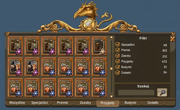 Dobry pomysł z filtrowaniem i zakładkami + "paczkowanie" po ileś tam w stosiku (przygody mogą być w standardowych paczkach, natomiast surowce w max takiej paczce jak sumaryczna pojemnośc magazynów).