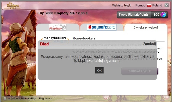 witam, mam problem z zakupem diamentów - korzystam z ipko i w innych sieciówkach bez problemu płacę za pomocą przelewy24 i moneybookers. pierwsza płatność w tej grze przez moneybookers - zero problemów poszło gładko.