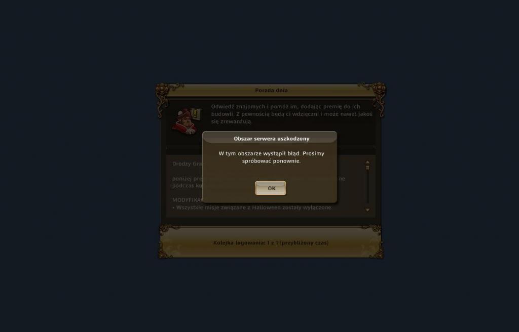 A czy pojawia ci się komunikat "Obszar serwera uszkodzony. W tym obszarze wystąpił błąd. Prosimy spróbować ponownie."?