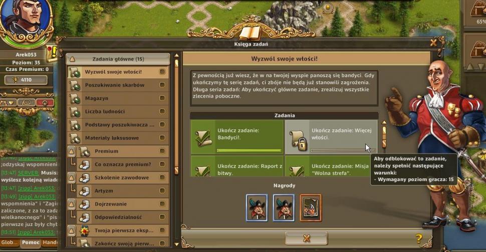 Dzień dobry mam problem z zadaniem "Wyzwól swoje włości" gdyż pod zadanie "Więcej włości" jest zablokowane żeby go odblokować muszę mieć 15 level a mam już 35 level, bez tego zadania nie mogę otrzymać nagrody. Co zrobić z tym fantem ?