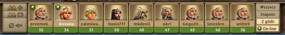 W puste miejsce (pod obecnym przyciskiem [Z gildii]) wprowadzić dodatkowy przycisk [on-line]*, który będzie współdziałał z powyższymi jako przełącznik.